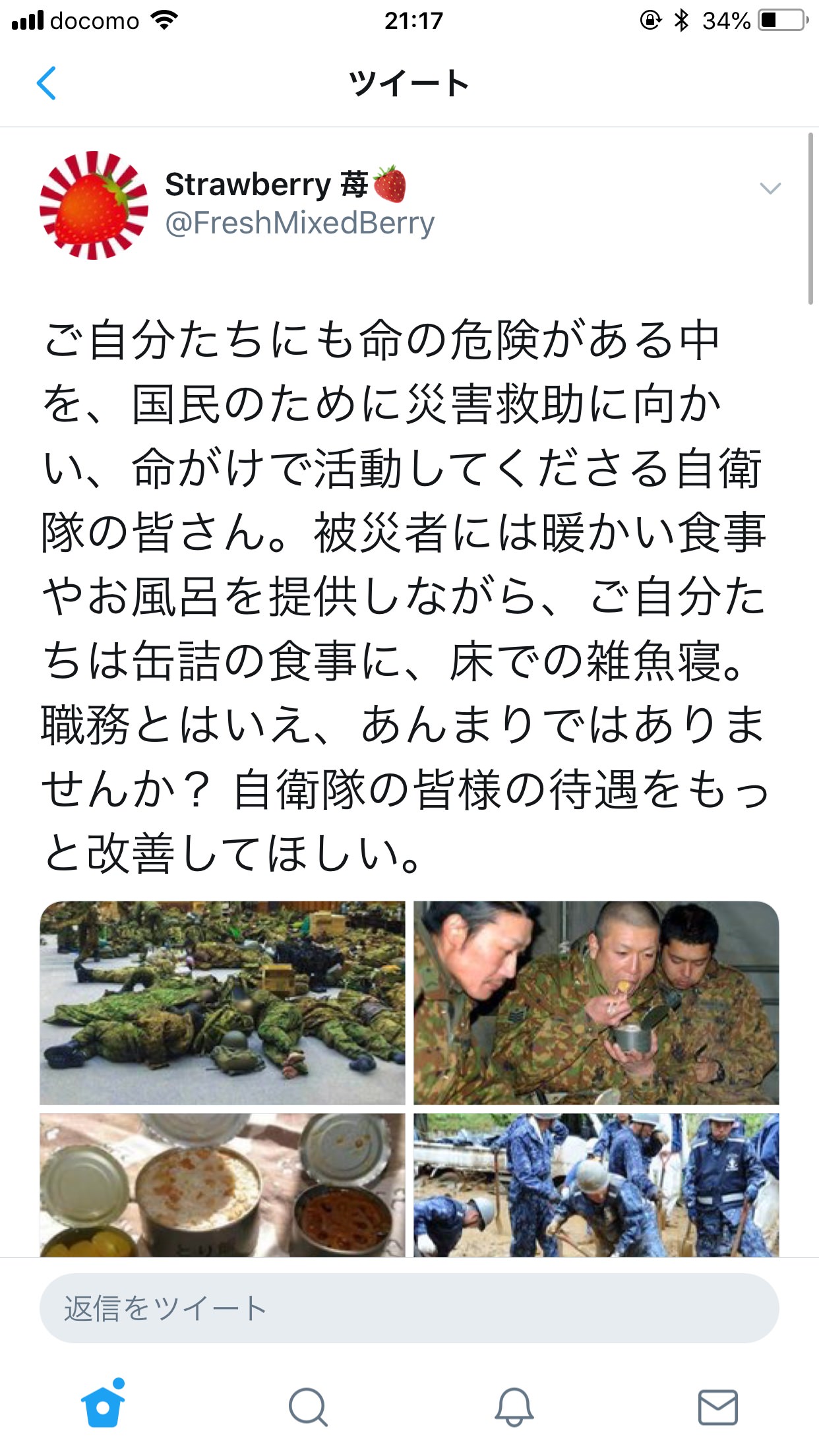 被災者には食事やお風呂を提供し、自分たちは缶詰の食事や床での雑魚寝。自衛隊の待遇改善を →4.6万RT
