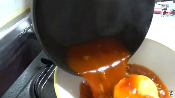 麺を全て取り出した後、沸いている汁には卵を入れて煮込めばいい。好みによって卵を熟す加減を調節して煮こめばいい。