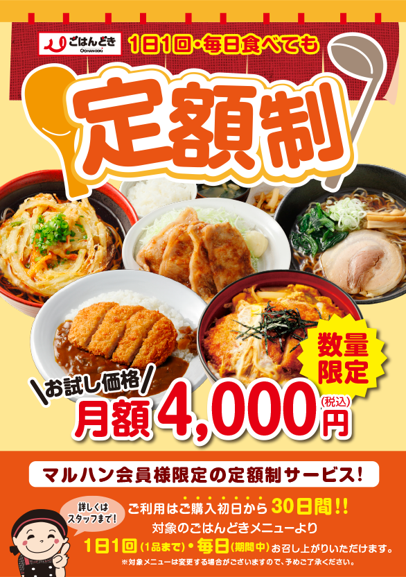 一部「ごはんどき」店舗にて、サブスクリプションモデルをスタートします。(7月29日)
