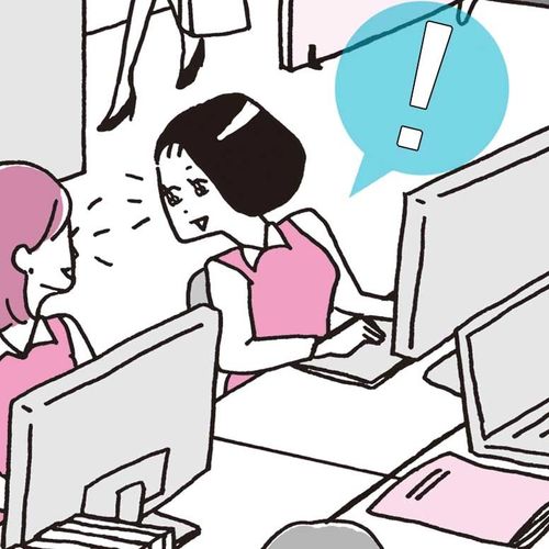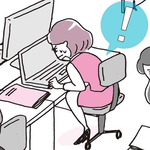 体は前、首だけ相手のほうを向くおしゃべりは体が歪む原因。時にはこっそり同僚と席を入れ替えて話そう。