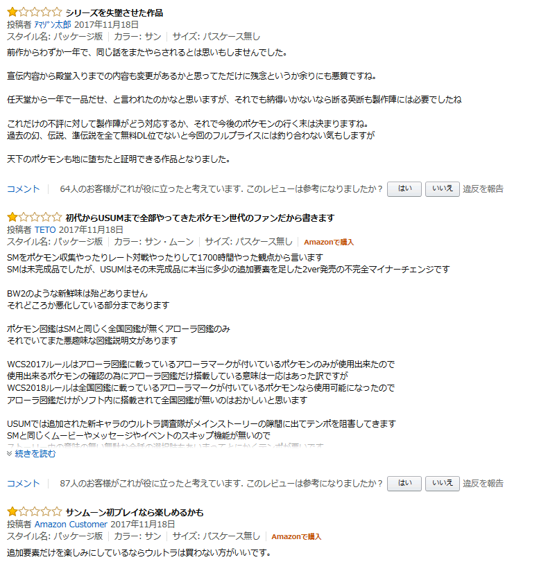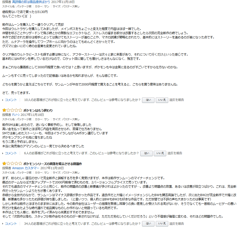 【悲報】ポケモン最新作、完全版を2バージョンで出してamazonレビュー☆3以下1:名無しさん@おーぷん2017/11/18(土)08:50:11 ID:1Ic