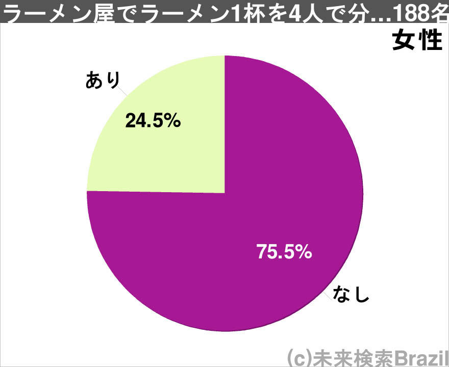 ・ラーメン屋でラーメン1杯を4人で分けて食べるのはアリ? 女性編(188名)