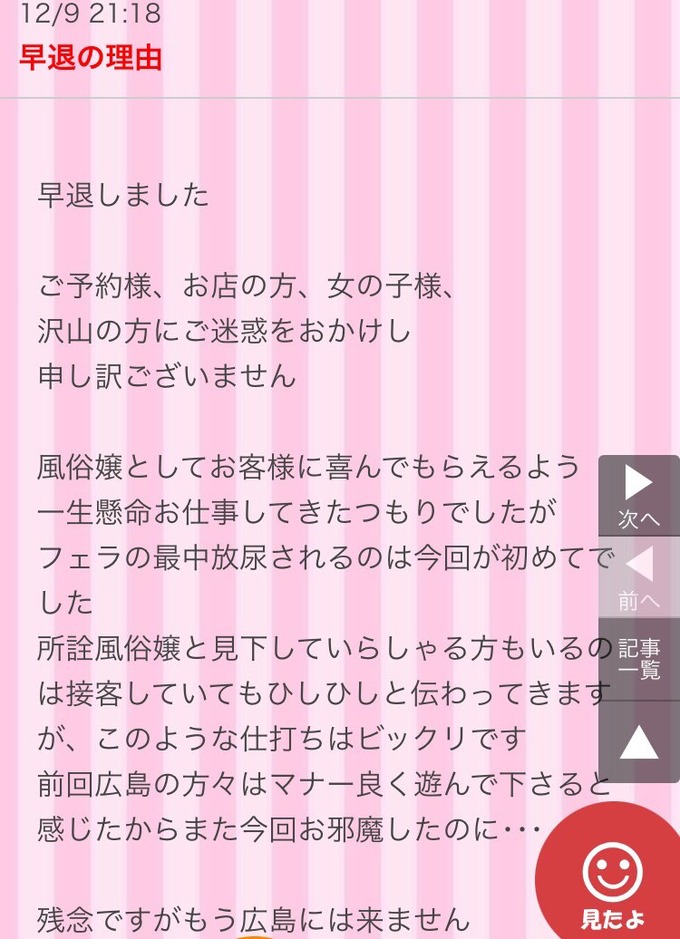 風俗嬢「フェラしてたら放尿された。やっぱ広島はクソ。風俗も辞めます」