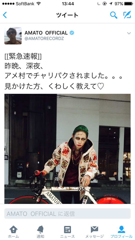 【悲報】窪塚洋介さんのチャリ、何者かにパクられる。もしかしてバビロンの仕業じゃ…